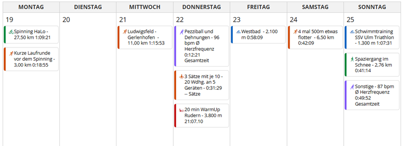 Aber trotz dem etwas schlechteren Lauf am Mittwoch, den ich kurzfristig nach dem HO noch eingebaut hatte da es fürs Radfahren schon wieder zu spät war, ist der Rest der Woche dann ganz gut gewesen.