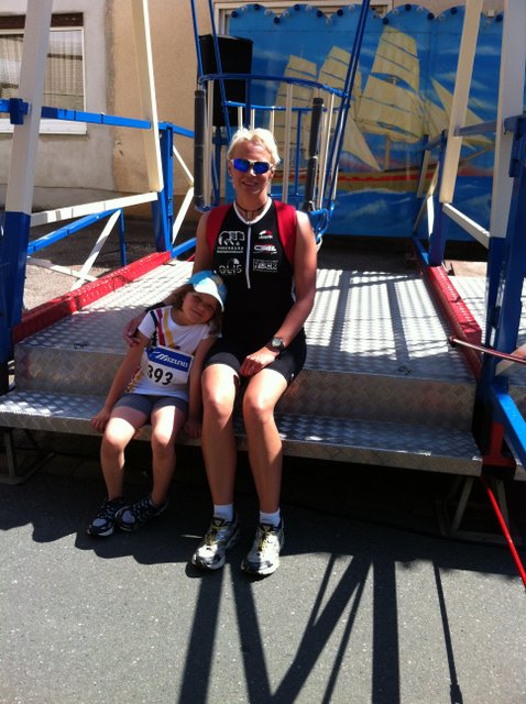Erst stand noch Mausis erster Lauf an. Nachdem sie sich versichtert hatte, dass es keine Startpistole gibt (da muss sie sich nämlich die Ohren zu halten und kann nicht laufen) hat sie sich anmelden lassen. 500 m Kinderlauf, ratz fatz waren die Kurzen wieder da. Ihr Kommentar dazu: das war aber wenig :lol:
