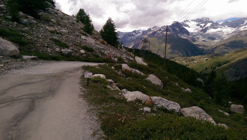 Ich habe hier echt gelitten aber auch den absolut besten Part des Marathon gehabt - der Ausblick auf die 20000 Gipfel ringsum und die Gletscherzungen rechts vom Monte Rose - UNBESCHREIBLICH !!!