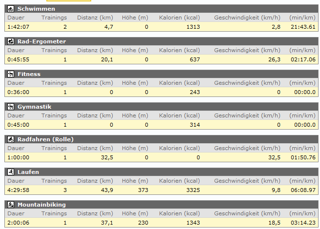 bis auf die ausgefallene lange Radtour bin ich auch mit der letzten Trainingswoche ganz zufrieden.