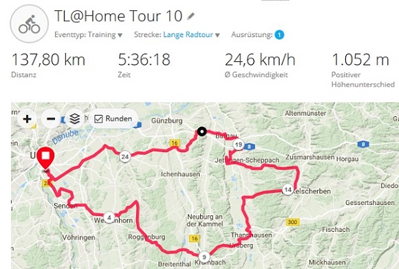 mit der abschließenden langen Tour ging heute mein kleines Trainingslager@Home zu Ende. Und wie erhofft lief es jetzt bei den letzten Touren - wohl auch dank viel besserem Wetter - viel besser als zu Beginn.