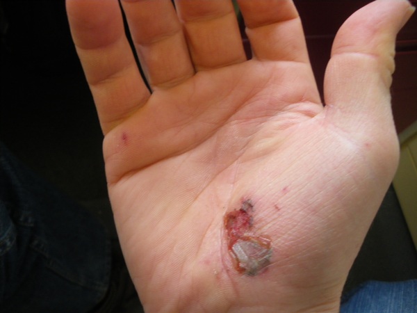 Ne sicher nicht, vor allem ist ne schicke offene Wunde in der Hand innen nicht so super.. dunkler Weg, Gullideckel.. bumm.. deppert.. brauchts echt nicht.