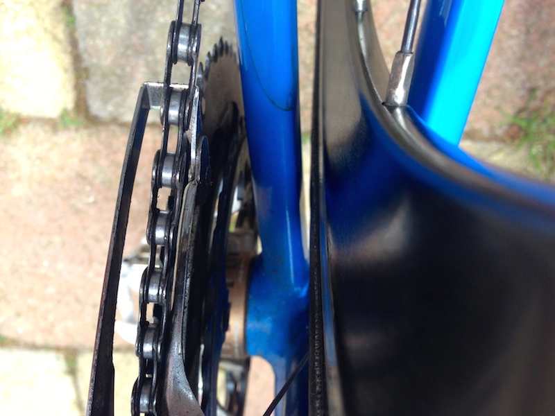Aber müsste das LR dann beim drehen wieder näher an die linke Kettenstrebe stoßen und nicht an die recht?